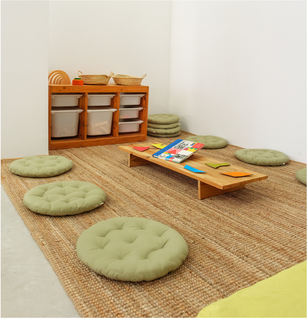 La nostra sala gran està equipada amb tot el necessari perquè els infants puguin crear amb llibertat. Hem creat també el “racó de la inspiració”, un espai de descans on els nens poden trobar materials i propostes que estimulin la seva imaginació i enginy, perfectes per aquells moments en què necessiten un petit descans o volen experimentar de manera autònoma.